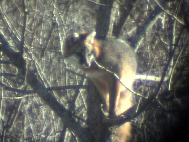 I look forward to getting some good results from this optics setup. Prior to getting a DSLR with telephoto, I had been trying to digiscope with my prior scope and a Canon point & shoot digital camera. The very first attempt with my old scope was back in 2003 trying to photograph a gray fox climbing a tree in our backyard.