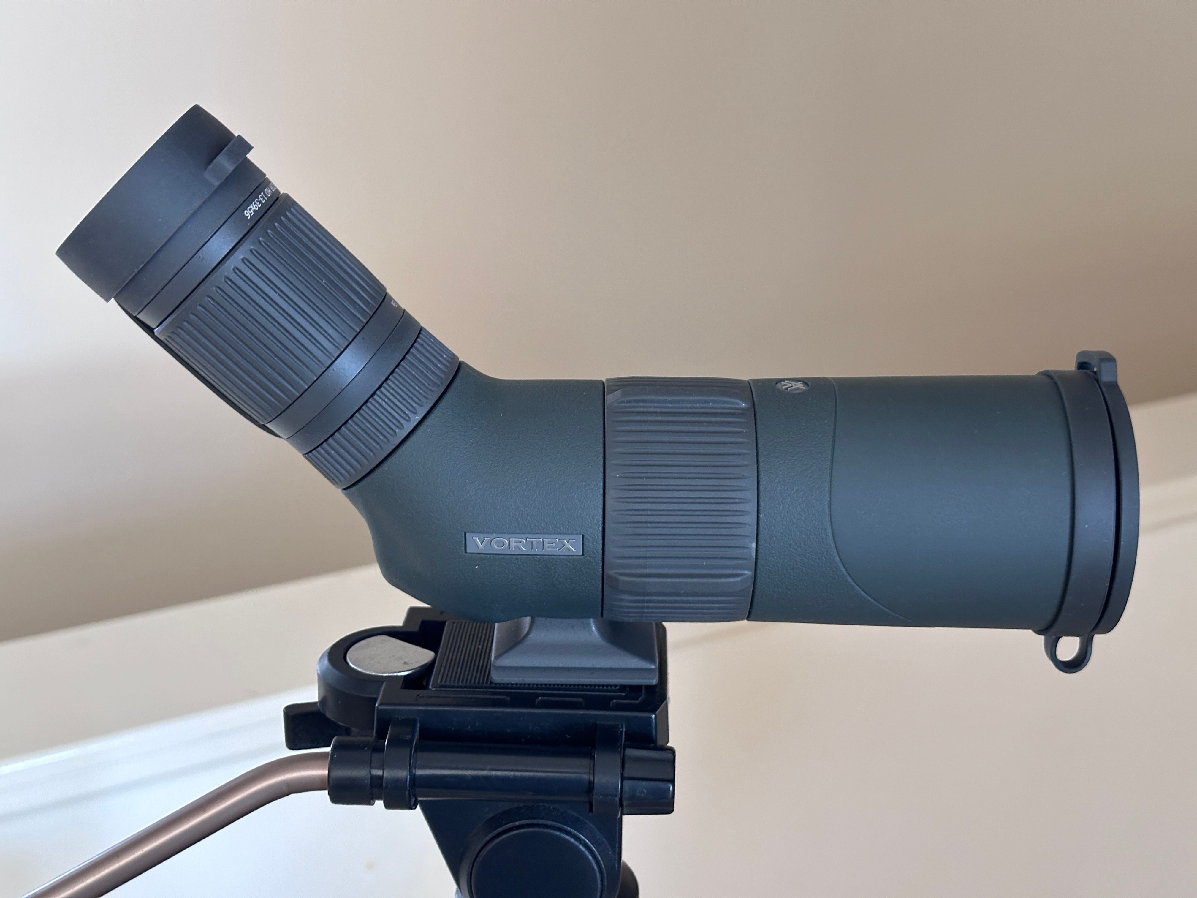 Generally the spotting scope is able to super magnify the subject versus a telephoto but the trade-off is a bit diminished depth of color due to the lower light of the scope. The other trade-off is the bird needs to be somewhat stationary in order to zoom in and focus it in the eyepiece. Most birds are moving too quickly for this to work. When the situation is right to view through the scope, it is a treat.