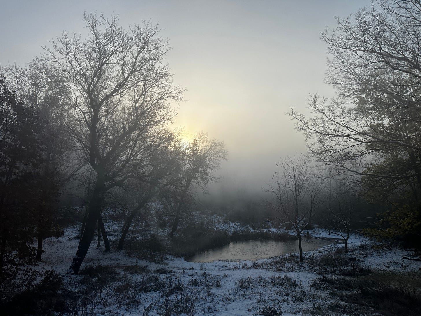 This morning was crisp with bright sunlight shining through ground fog that blanketed the low areas.