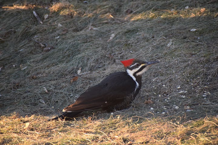 Now the first ten days of January have been a bit cooler than average but very dry with no snowfall. The feeder birds have been somewhat scarce but that may pick up with an upcoming snowfall. I have had a good showing of cardinals at dusk getting fuel for the night-time roosts. About every night I have been hearing the duet of a pair of great horned owls at sunset. Pileated woodpeckers have been active with a pair visiting my suet feeder and I have heard the male drumming.