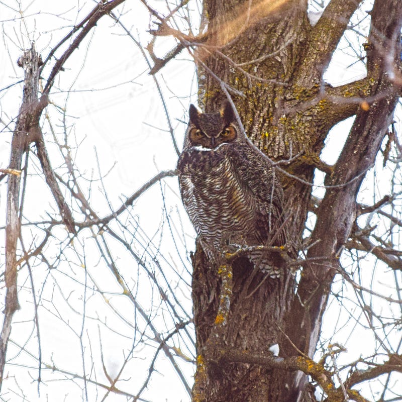 Hooters as in Owls….not the restaurant chain which is still “alive and well” according to their Instagram. In the north country, this time of year we start to hear owls courting and establishing territories with their hoots. In Minnesota our two primary species are the Great Horned and Barred Owls. Both species are calling now but their calls are very different.