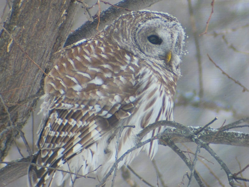 During courtship, the Barred Owl gets very raucous with loud calls and monkey-like sounds that can wake you up in the middle of the night.